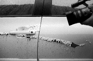 视频:千米道路数十辆私家车一夜之间被泼硫酸 起源:安徽电视台《超级消息场》车身被泼硫酸处鼓包起皮