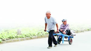 陈大爷每天步行6小时,拉着老伴去看病。 记者 罗川 摄