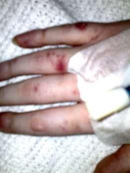 然而,医院的医生们却否认了乔安妮家庭医生的诊断,他们以为乔安妮只是得了稍微的沾染。医生们将乔安妮扔在了察看室,给了她一些治疗头疼的药片和药水。他们居然疏忽了乔安妮胳膊、手和腿上涌现的紫色疹子。